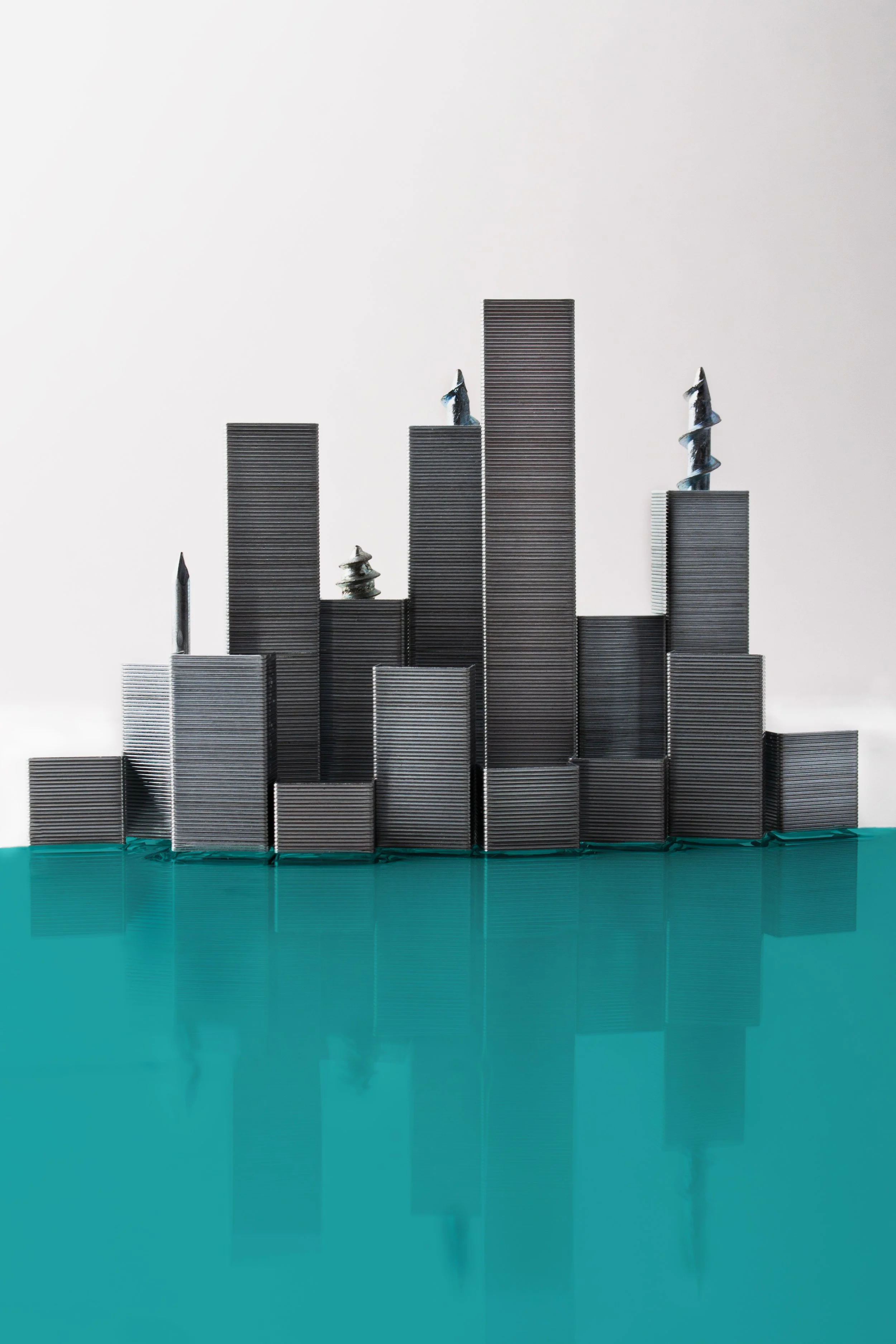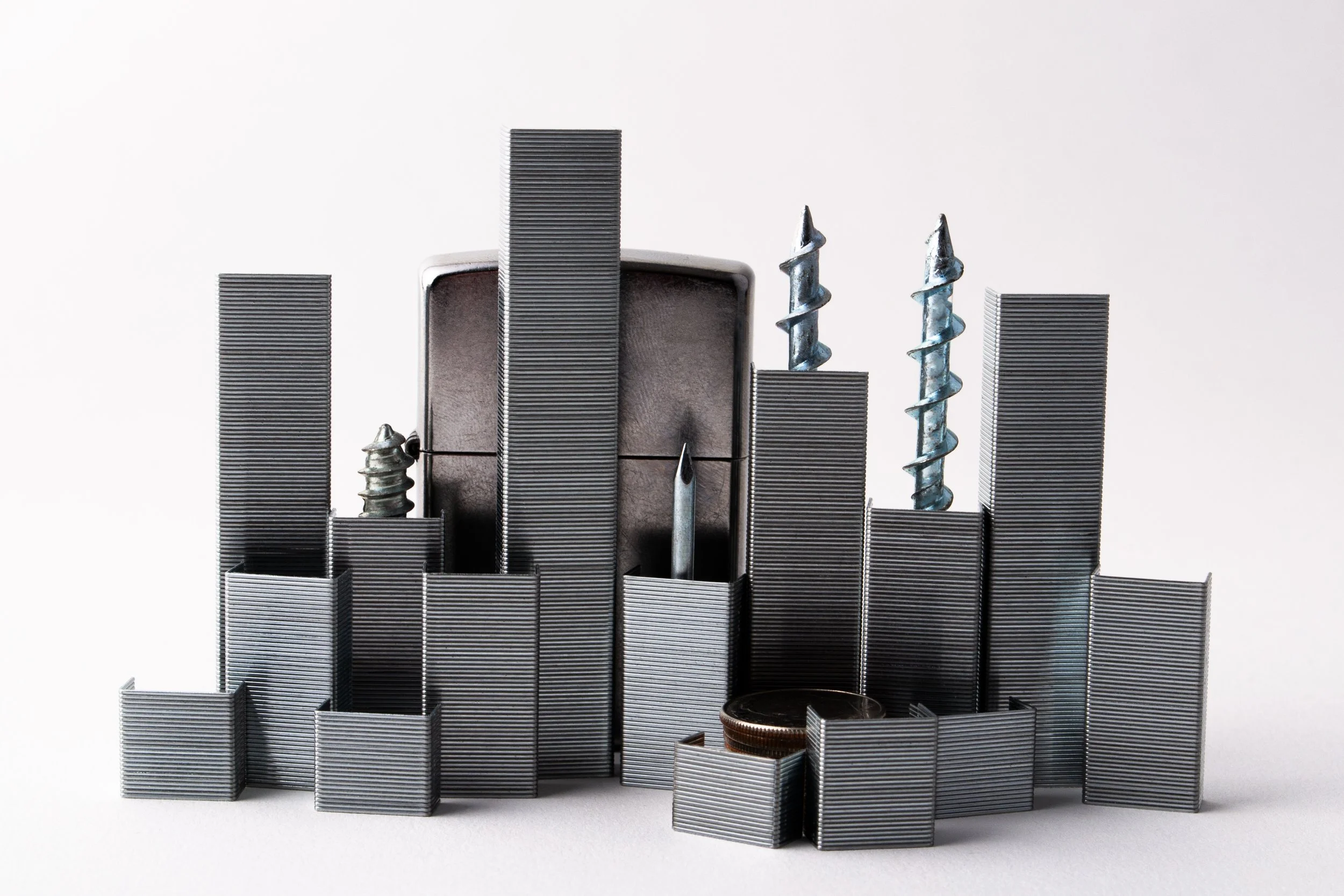 This was another experimental photoshoot where I played around with photographing metallic and shiny objects. I played around with top down arrangements of silverware, screws, and paperclips. I created different figurations including rings and fibonacci spirals. I also played around with making cities out of staples, screws, a lighter, and some coins. For some of the staple city photos I also added water to help give the city a more interesting look to it.