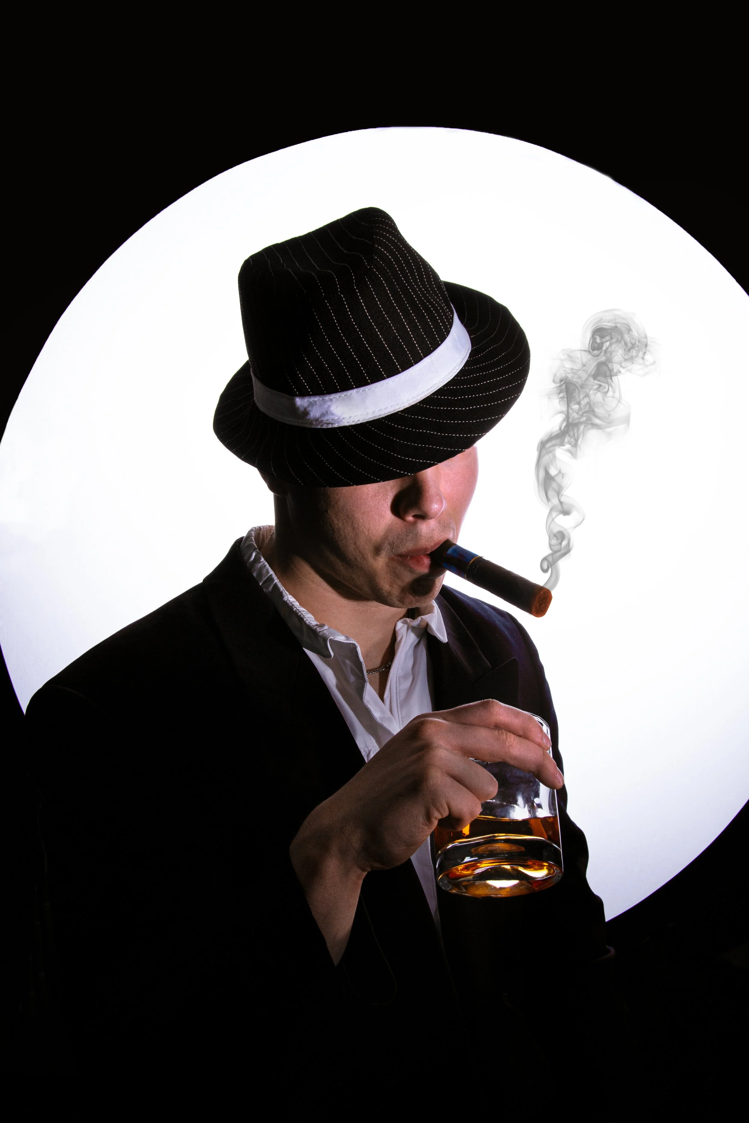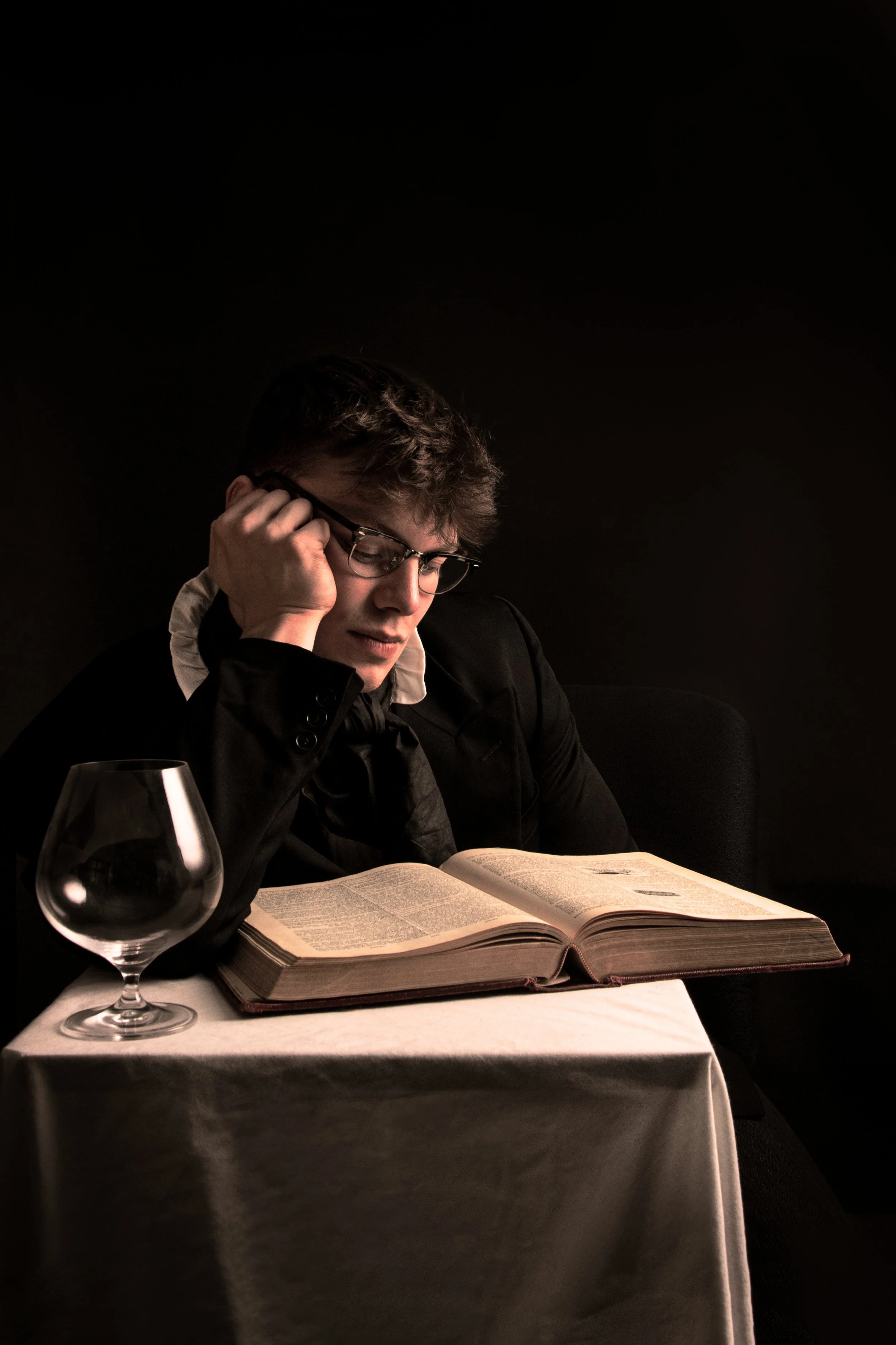 This photoshoot focused on taking portraits of subjects in timely settings. They were mainly supposed to recreate renaissance paintings which I did for the one with the skeleton and the subject reading at the table. However, I also went for a 1920s mobster aesthetic for some of the other photos as I felt these would be fun and would allow me to play around with this spotlight background idea.